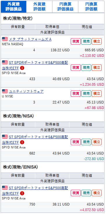 しかしNISA枠を埋めれる資金はあり、埋めておかないと5年後までその部分の枠を使うことができなくなってしまいもったいないと考えてるので埋め優先でSPYDを100口ほど追加投資いたしました!
